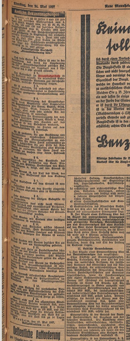 Es wird das Schwimmbad von Ilvesheim ebenso wie Ladenburg als herrliches Schwimmbad mit großem Becken und weiträumiger Liegewiese gepriesen. Weitere hübsche Schwimmbäder sind in Schriesheim und Bürstadt. Die Stadtverwaltung wird kritisiert, dass die Bürgermeister der Umlandgemeinden wohl besser wüssten, was dem Bürger frommt. Als Fernziel wird ein Freibad in jedem größeren Stadtteil von der Stadtverwaltung genannt.